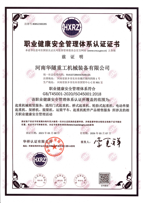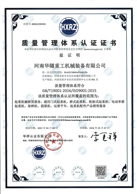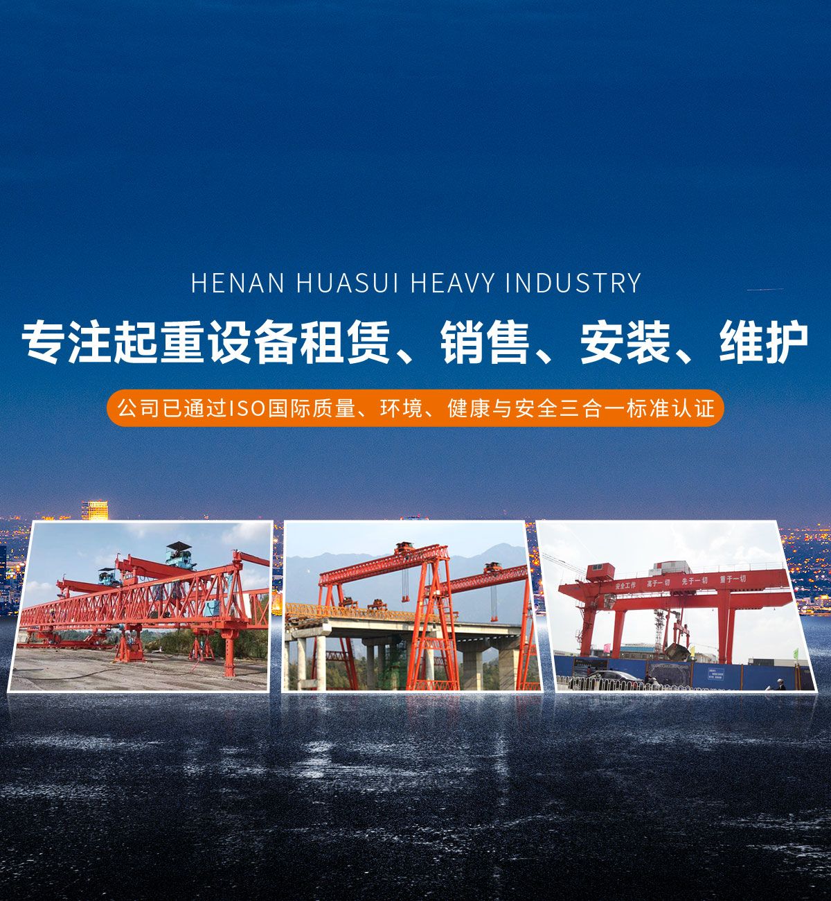 河南華隧重工機械裝備有限公司主要從事通用門式起重機、橋式起重機、電動單梁起重機,輪胎式起重機、架橋機、提梁機、遠(yuǎn)梁平車、鋼絲繩電動萌蘆、卷揚機、起重配件制造、銷售:起重機械租賃、安裝和維修,起重設(shè)備園收,機械設(shè)備維修,鋼結(jié)構(gòu)工程承包,橋梁工程及技術(shù)咨淘服務(wù),銷售五金制品、機電設(shè)備:建設(shè)工程監(jiān)理,建設(shè)工程設(shè)計,各類工程建設(shè)活動,建筑勞務(wù)分包,建筑物折除作業(yè),施工作業(yè),工程管理服務(wù),土石方工程施工,裝如發(fā)運?! 」疽淹ㄟ^IS0國際質(zhì)量、環(huán)境、健康與安全三合一標(biāo)準(zhǔn)認(rèn)證,特種設(shè)備制造許可證和特種設(shè)備安裝改造維修許可證。擁有完熟的質(zhì)量管理體系。嚴(yán)格的管理制度,強大的生產(chǎn)能力和先進的檢測手段,在保證產(chǎn)品質(zhì)量的同時,也具備了極強的市場競爭力。  公司堅持科技創(chuàng)新為理念,產(chǎn)品質(zhì)量為核心,注重信譽,建立了減信可靠、快捷、思速。便利周到的售后服務(wù)網(wǎng)絡(luò)?! ∥覀儞碛械募夹g(shù)專家和技術(shù)服務(wù)隊伍為客戶提供充善的售前技術(shù)支持和全天候的售后服務(wù)體系,讓您無后顧之憂,享受一站式的超值服務(wù)?!  叭A隧重工,伴您成功“是華隧重工永遠(yuǎn)的宗指,真被的希望與各界朋友攜手并進。共創(chuàng)輝準(zhǔn)!